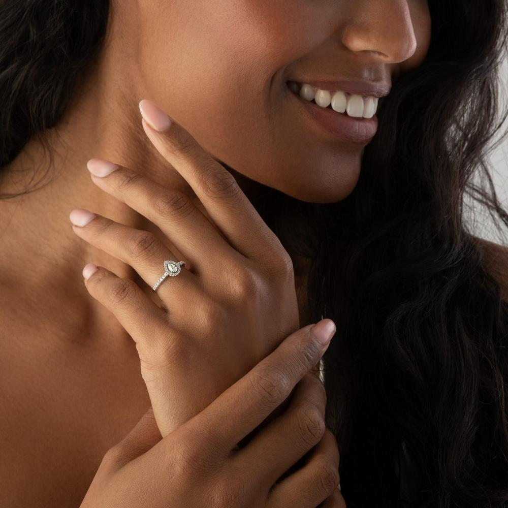 18ct White Gold Diamond Pear Shaped Halo Engagement Ring