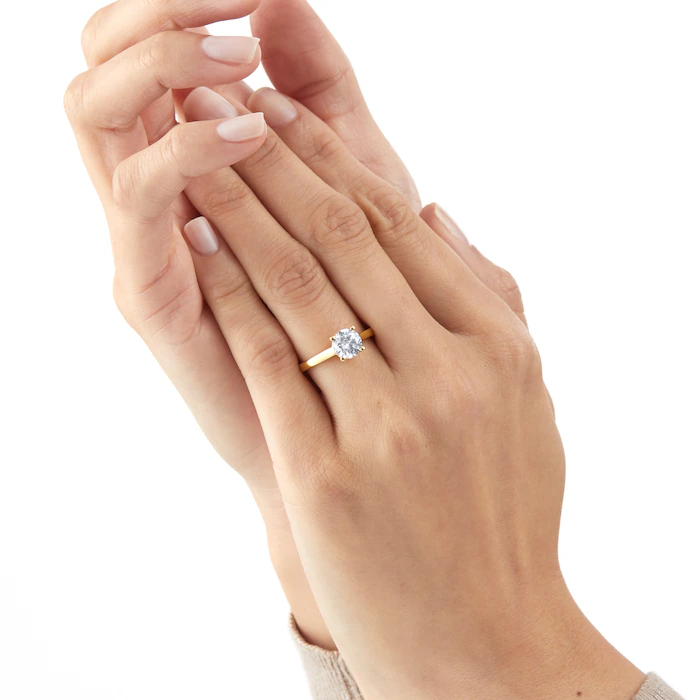 Held in a traditional four-claw setting, this solitaire engagement ring has a forever style to complement your forever love.