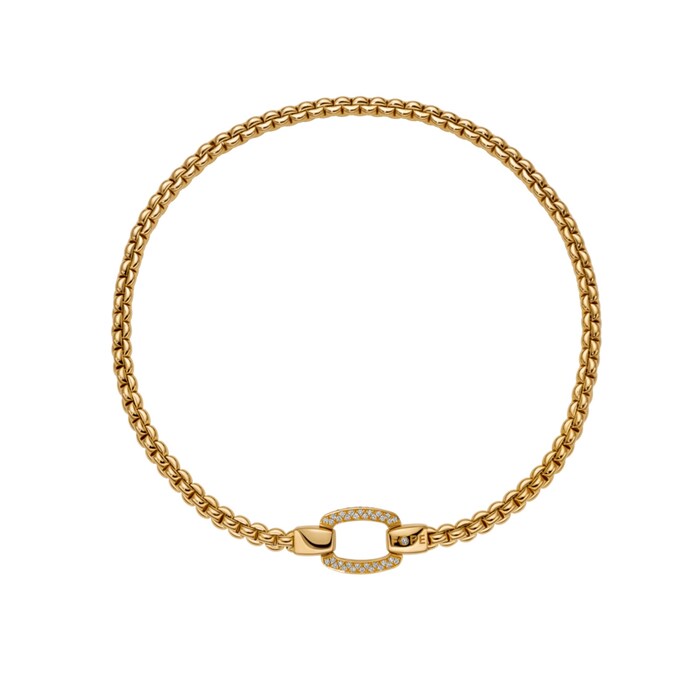 Flexible necklace made entirely of 18 carat gold, featuring a push clasp with diamond pavé